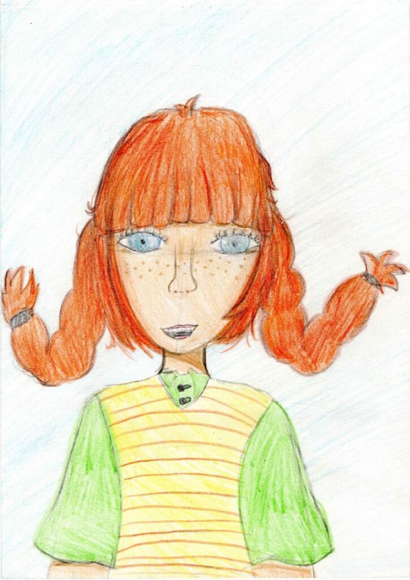 oraz „Pippi Langstrumpf” Alicji Staszak z kl. VI Szkoły Podstawowej nr 1 im. Jana Pawła II w Męcinie, za trafne oddanie charakteru Pippi w kolorach i w spojrzeniu.